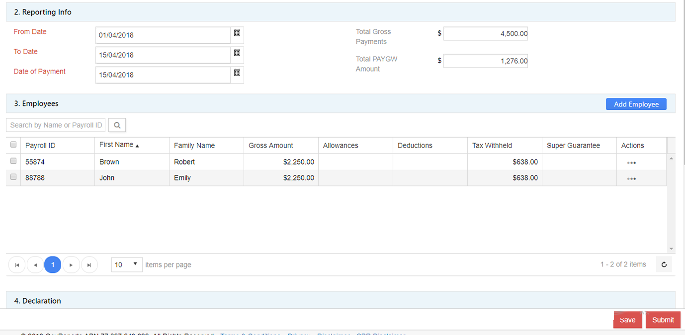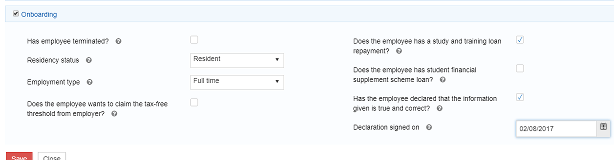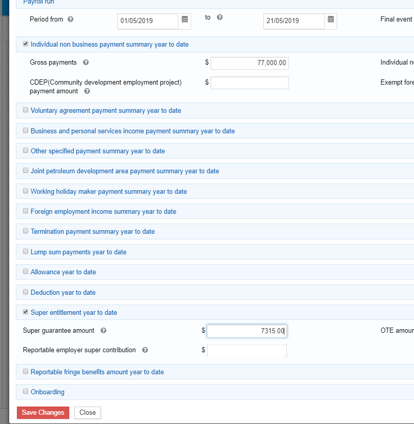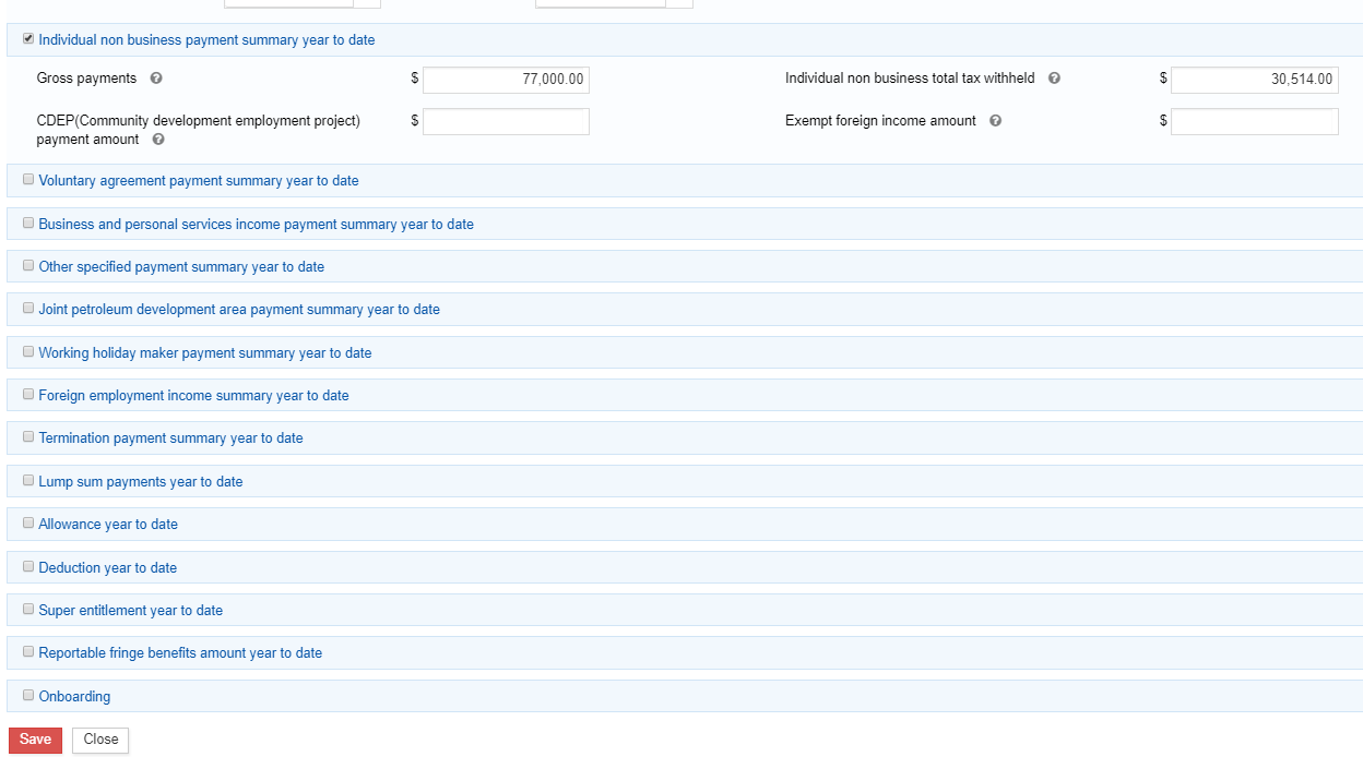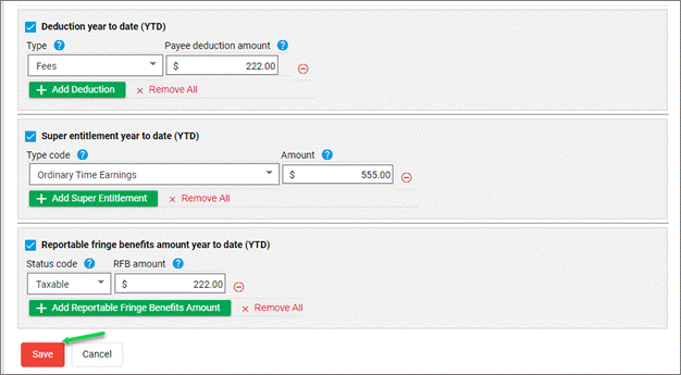 Once you have recorded employees’ year to date figures for all required income streams and payroll categories, select Save.