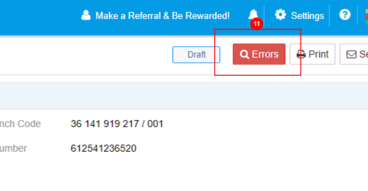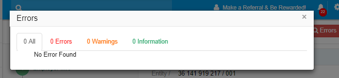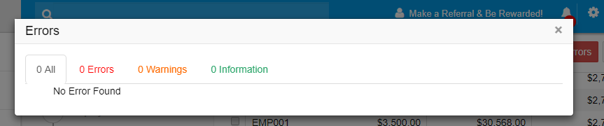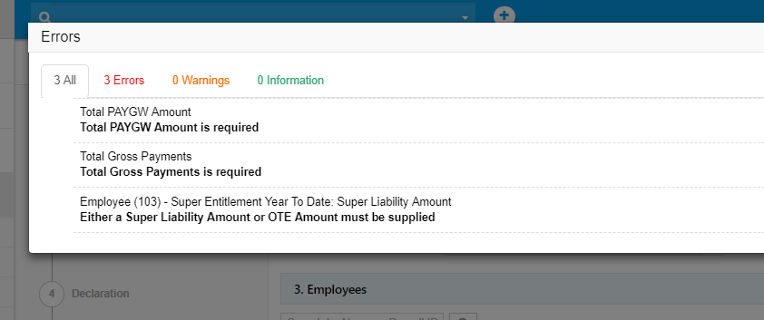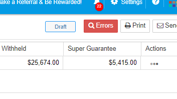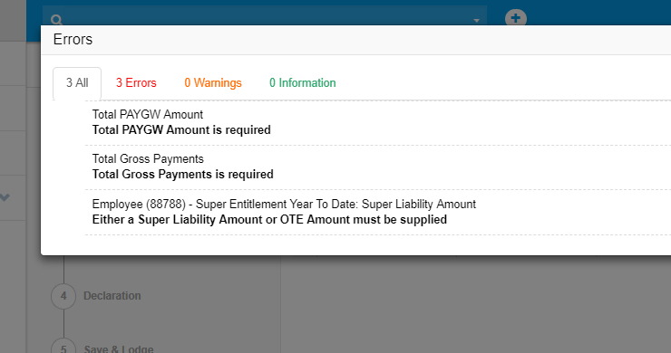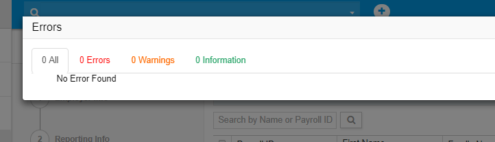 If there are errors present, these will show as a summary to the right of the Payroll Event screen.