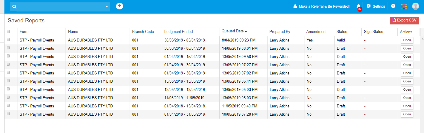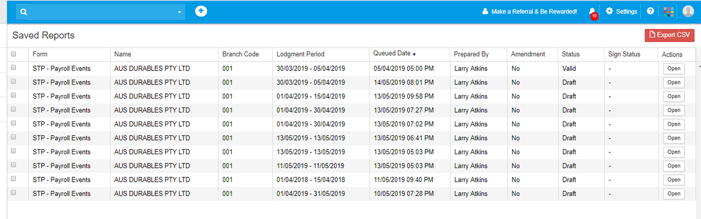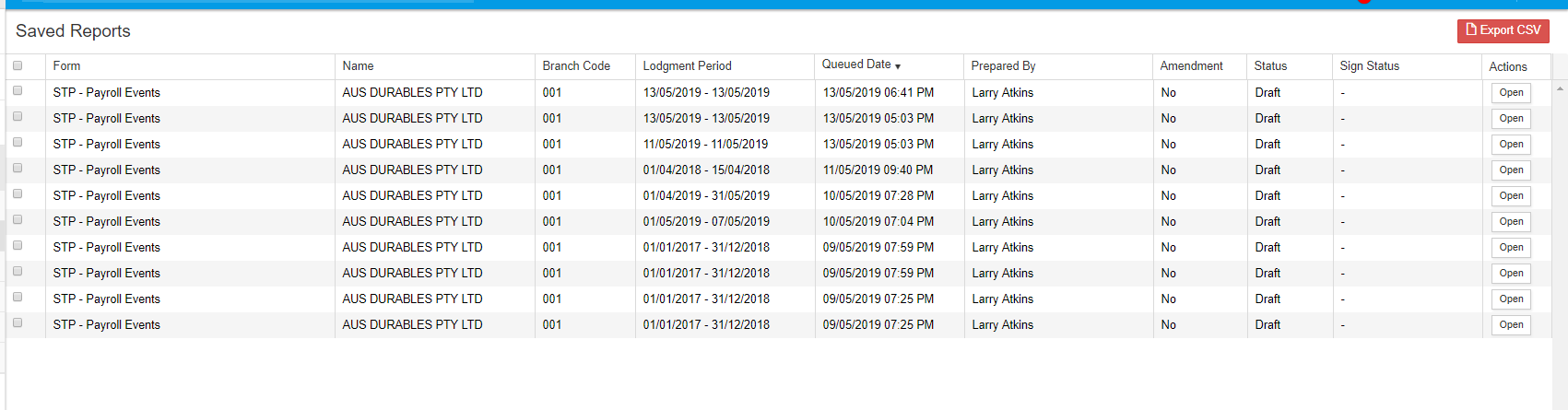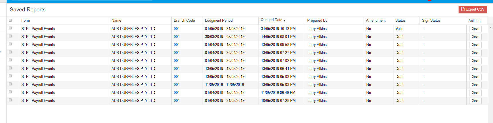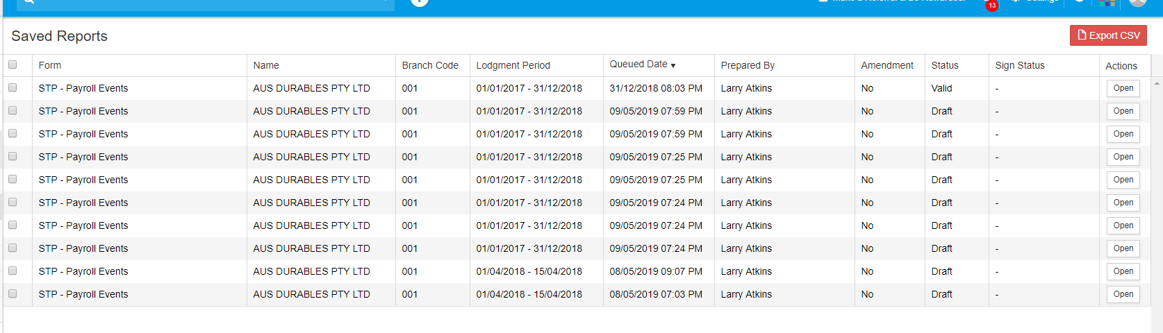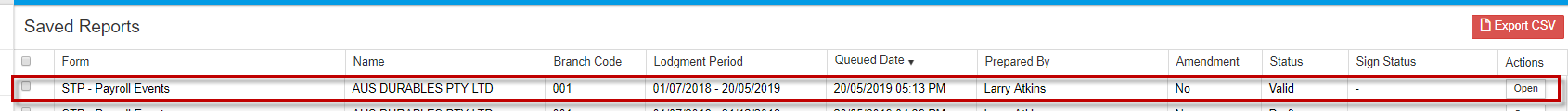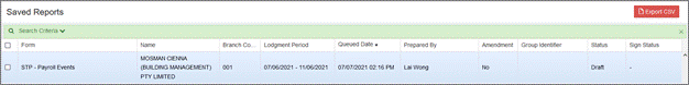 If you have already validated the STP report, (i.e., it is free from errors), and it is not yet lodged, then the report will be listed in Saved Reports with Valid status.