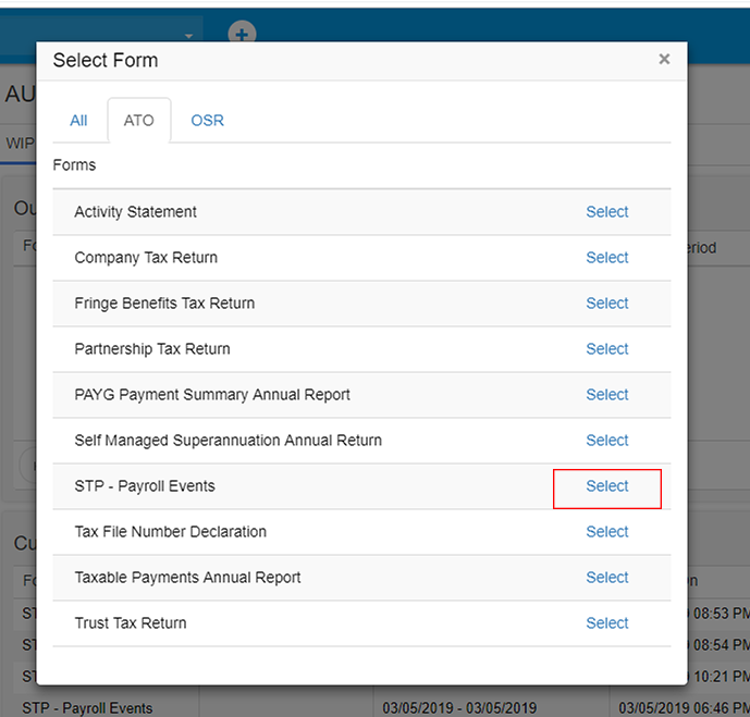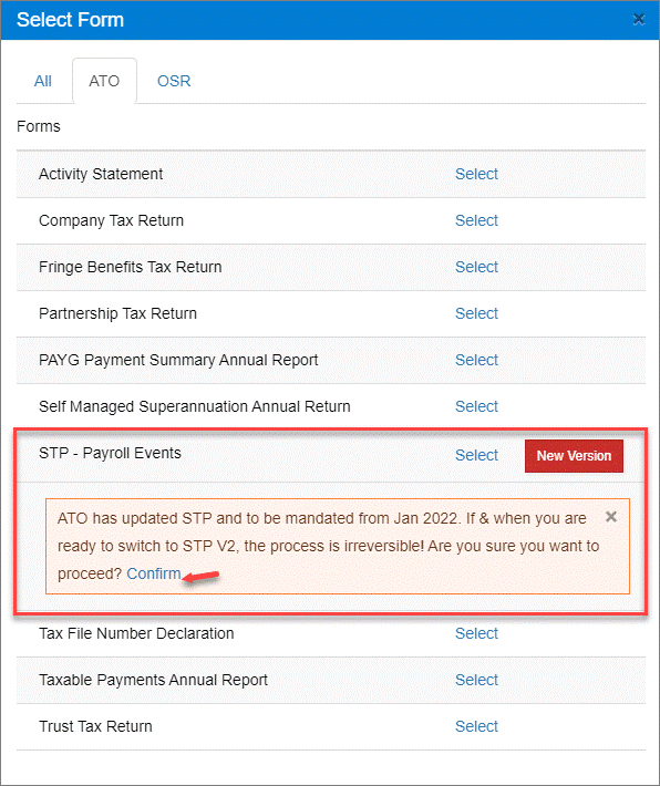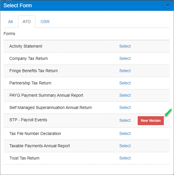 If STP has already been swapped to V2, go to My Clients > select client > Forms. Select STP – Payroll Events.