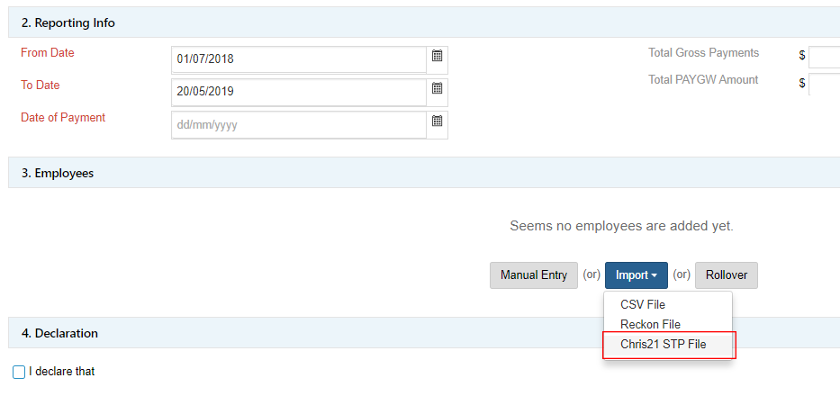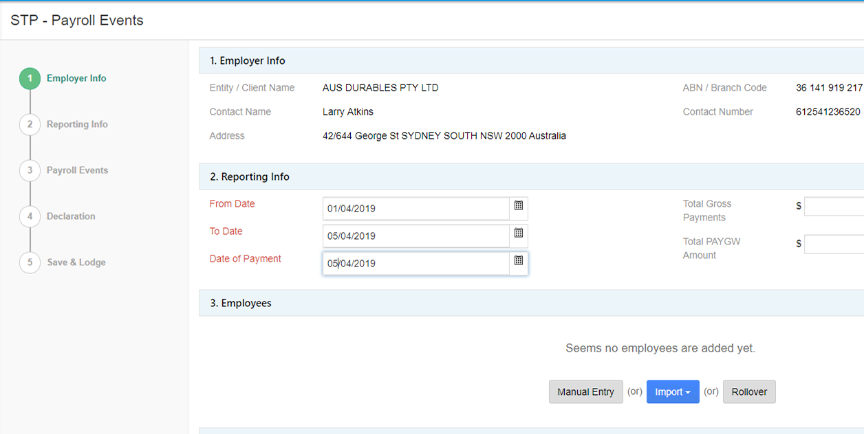 If you are migrating from other STP software to GovReports, first you will need to submit an updated event. This notifies the ATO that the reporting software has been changed from another software to GovReports.