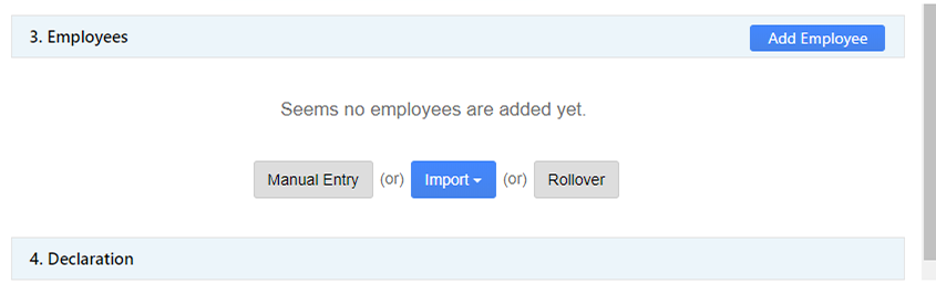 In the Employees section, select Manual Entry, or Add Employee. Either option will then take you to the Add Employee details screen.
