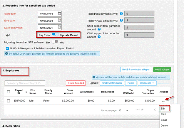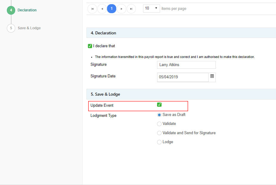 Note that the Update Event indicator is now selected automatically. This notifies the ATO that the event is an updated event, not a new event.