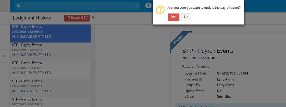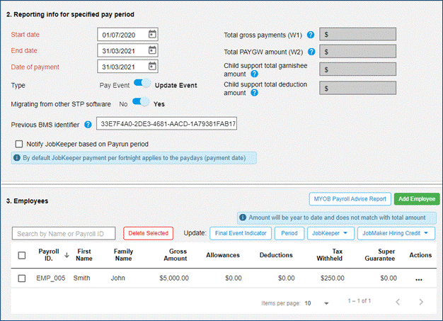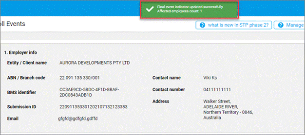 You can then proceed with entering new payroll events once the BMS update has been submitted and successfully lodged with the ATO.