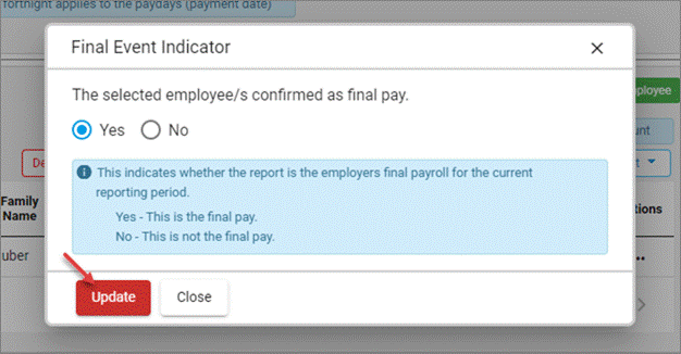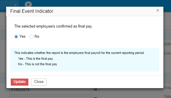 You make a finalisation declaration by providing a final event indicator for each employee.