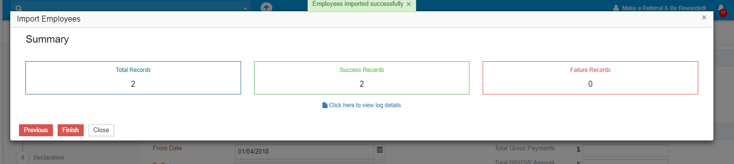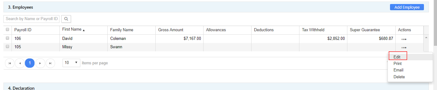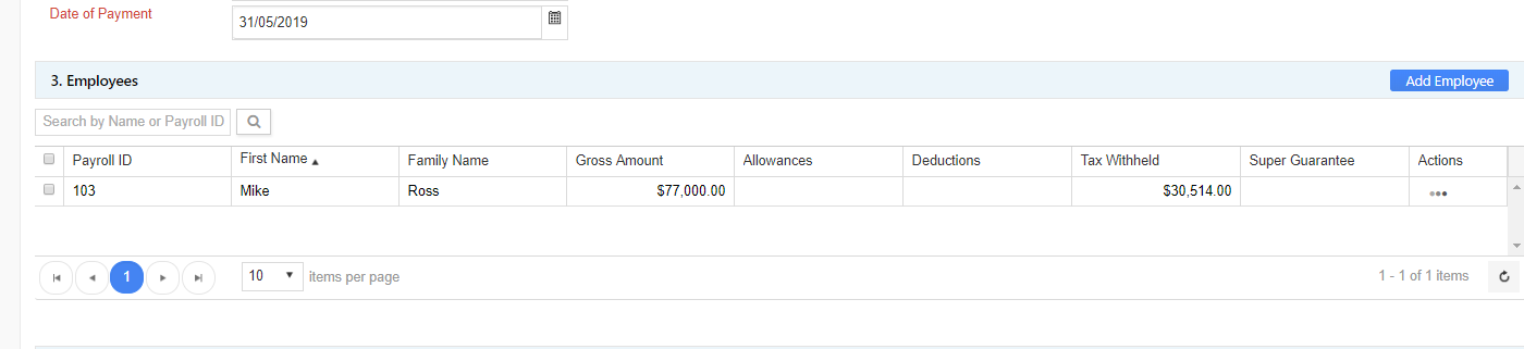 The employee’s payroll details will be populated in the Employees section as a summary.