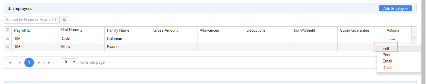 Once the employees are added and any details saved, it is not possible to edit this section and you will need to delete the Payroll Event and start again.