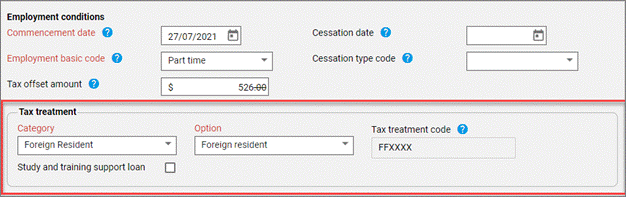 Choose employee’s tax category and option to declare the tax code. (Regular, Actors, Foreign Resident, No TFN etc…)