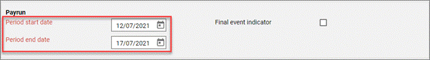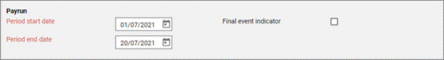 The pay run Period start date and Period end date will be prefilled based on the pay period entered in the Reporting Info for specified pay period .