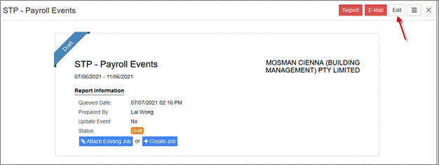 This displays the reporting information for the Payroll Event. Select Edit to open the event.