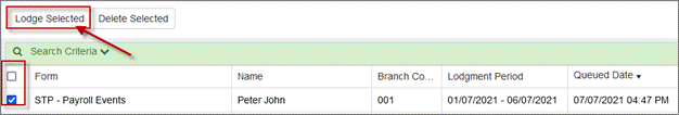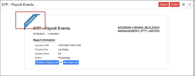 Once you select Lodge Selected, the STP report status will change to Processing. The report will be automatically lodged once it has proceeded through the ATO queue.