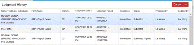 Once the report has been successfully submitted to the ATO, the report will display under My Lodgments > History and also in the client dashboard under the Lodged tab.
