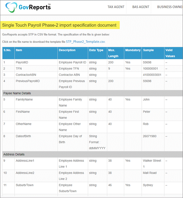 For those uploading payroll in CSV for STP phase 2 lodgements, the STP phase 2 CSV file import specification can be downloaded here whilst earlier version will still work with some additional manual inputs required.