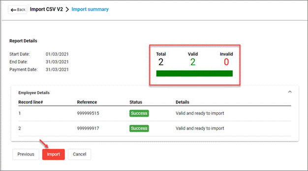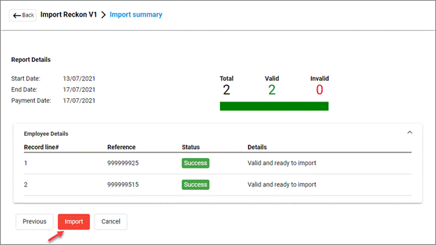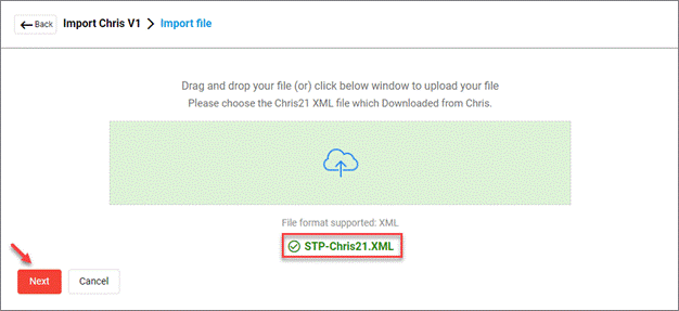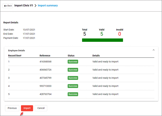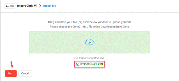 When the correct Chris21 STP file is imported, the import summary will be valid.