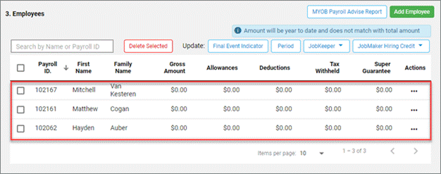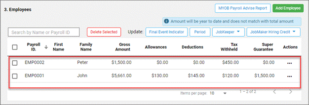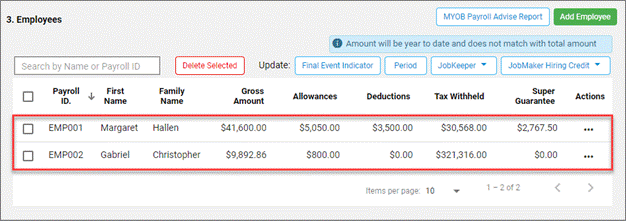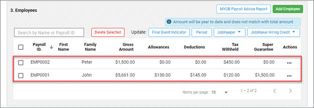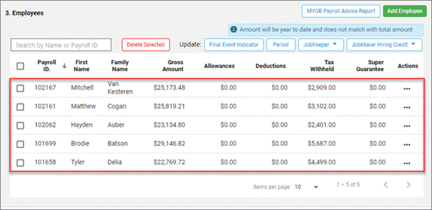 Records will be filled in the Employees section. Select all employees to be finalised for the year.