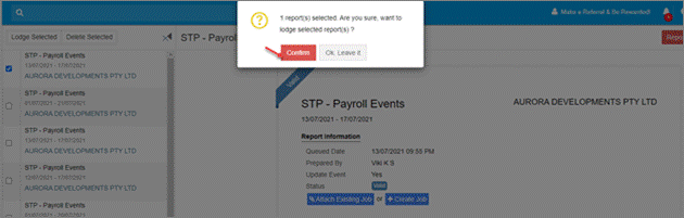 Once you Submit the STP report, the status will change to Processing, which means it is in queue to the ATO. The report will be automatically lodged once it has proceeded through the ATO queue.