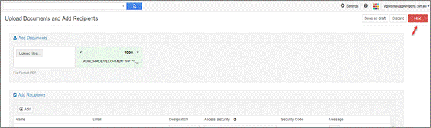 This takes you to GovReports Digital Authentication in a separate browser tab. Check the email address and name of the client are correct. The payroll event report will automatically be attached to the email. Customise the message if required.