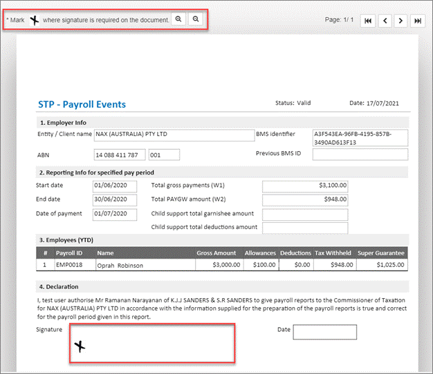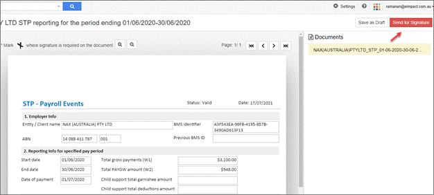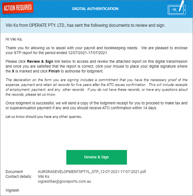 Once an STP report is ready for lodgment, you can send the report to your client for their digital signature.