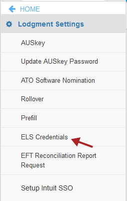 To access ELS Setting, click on Lodgment Settings, which will list out all the settings available in GovReports and select ELS Credentials.